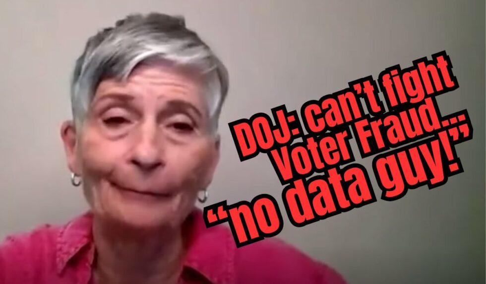 Lamenting what she said was the lack of “a data guy” she says she can’t review the assembled evidence of voting irregularities. Riordan, the ‘top dog’ in the Department of Justice, cannot investigate voter fraud because she cannot meaningfully review the election data which might reveal where the fraud occurred.