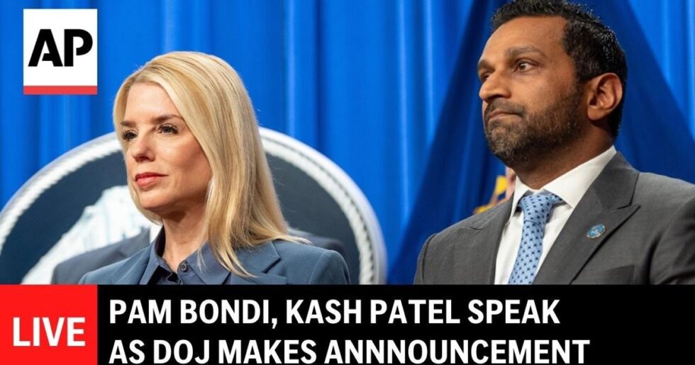 Home > KASH PATEL 68 views 4 min 0 Comment DOJ announcement LIVE: Pam Bondi, Kash Patel hold press conference in Washington | Ap Video - February 6, 2026 State AlabamaAlaskaArizonaArkansasCaliforniaColoradoConnecticutDelawareFloridaGeorgiaHawaiiIdahoIllinoisIndianaIowaKansasKentuckyLouisianaMaineMarylandMassachusettsMichiganMinnesotaMississippiMissouriMontanaNebraskaNevadaNew HampshireNew JerseyNew MexicoNew YorkNorth CarolinaNorth DakotaOhioOklahomaOregonPennsylvaniaRhode IslandSouth CarolinaSouth DakotaTennesseeTexasUtahVermontVirginiaWashingtonWashington D.C.West VirginiaWisconsinWyomingPuerto RicoUS Virgin IslandsArmed Forces AmericasArmed Forces PacificArmed Forces EuropeNorthern Mariana IslandsMarshall IslandsAmerican SamoaFederated States of MicronesiaGuamPalauAlberta, CanadaBritish Columbia, CanadaManitoba, CanadaNew Brunswick, CanadaNewfoundland, CanadaNova Scotia, CanadaNorthwest Territories, CanadaNunavut, CanadaOntario, CanadaPrince Edward Island, CanadaQuebec, CanadaSaskatchewan, CanadaYukon Territory, Canada Zip Code Country United States of AmericaUS Virgin IslandsUnited States Minor Outlying IslandsCanadaMexico, United Mexican StatesBahamas, Commonwealth of theCuba, Republic ofDominican RepublicHaiti, Republic ofJamaicaAfghanistanAlbania, People’s Socialist Republic ofAlgeria, People’s Democratic Republic ofAmerican SamoaAndorra, Principality ofAngola, Republic ofAnguillaAntarctica (the territory South of 60 deg S)Antigua and BarbudaArgentina, Argentine RepublicArmeniaArubaAustralia, Commonwealth ofAustria, Republic ofAzerbaijan, Republic ofBahrain, Kingdom ofBangladesh, People’s Republic ofBarbadosBelarusBelgium, Kingdom ofBelizeBenin, People’s Republic ofBermudaBhutan, Kingdom ofBolivia, Republic ofBosnia and HerzegovinaBotswana, Republic ofBouvet Island (Bouvetoya)Brazil, Federative Republic ofBritish Indian Ocean Territory (Chagos Archipelago)British Virgin IslandsBrunei DarussalamBulgaria, People’s Republic ofBurkina FasoBurundi, Republic ofCambodia, Kingdom ofCameroon, United Republic ofCape Verde, Republic ofCayman IslandsCentral African RepublicChad, Republic ofChile, Republic ofChina, People’s Republic ofChristmas IslandCocos (Keeling) IslandsColombia, Republic ofComoros, Union of theCongo, Democratic Republic ofCongo, People’s Republic ofCook IslandsCosta Rica, Republic ofCote D’Ivoire, Ivory Coast, Republic of theCyprus, Republic ofCzech RepublicDenmark, Kingdom ofDjibouti, Republic ofDominica, Commonwealth ofEcuador, Republic ofEgypt, Arab Republic ofEl Salvador, Republic ofEquatorial Guinea, Republic ofEritreaEstoniaEthiopiaFaeroe IslandsFalkland Islands (Malvinas)Fiji, Republic of the Fiji IslandsFinland, Republic ofFrance, French RepublicFrench GuianaFrench PolynesiaFrench Southern TerritoriesGabon, Gabonese RepublicGambia, Republic of theGeorgiaGermanyGhana, Republic ofGibraltarGreece, Hellenic RepublicGreenlandGrenadaGuadaloupeGuamGuatemala, Republic ofGuinea, Revolutionary People’s Rep’c ofGuinea-Bissau, Republic ofGuyana, Republic ofHeard and McDonald IslandsHoly See (Vatican City State)Honduras, Republic ofHong Kong, Special Administrative Region of ChinaHrvatska (Croatia)Hungary, Hungarian People’s RepublicIceland, Republic ofIndia, Republic ofIndonesia, Republic ofIran, Islamic Republic ofIraq, Republic ofIrelandIsrael, State ofItaly, Italian RepublicJapanJordan, Hashemite Kingdom ofKazakhstan, Republic ofKenya, Republic ofKiribati, Republic ofKorea, Democratic People’s Republic ofKorea, Republic ofKuwait, State ofKyrgyz RepublicLao People’s Democratic RepublicLatviaLebanon, Lebanese RepublicLesotho, Kingdom ofLiberia, Republic ofLibyan Arab JamahiriyaLiechtenstein, Principality ofLithuaniaLuxembourg, Grand Duchy ofMacao, Special Administrative Region of ChinaMacedonia, the former Yugoslav Republic ofMadagascar, Republic ofMalawi, Republic ofMalaysiaMaldives, Republic ofMali, Republic ofMalta, Republic ofMarshall IslandsMartiniqueMauritania, Islamic Republic ofMauritiusMayotteMicronesia, Federated States ofMoldova, Republic ofMonaco, Principality ofMongolia, Mongolian People’s RepublicMontserratMorocco, Kingdom ofMozambique, People’s Republic ofMyanmarNamibiaNauru, Republic ofNepal, Kingdom ofNetherlands AntillesNetherlands, Kingdom of theNew CaledoniaNew ZealandNicaragua, Republic ofNiger, Republic of theNigeria, Federal Republic ofNiue, Republic ofNorfolk IslandNorthern Mariana IslandsNorway, Kingdom ofOman, Sultanate ofPakistan, Islamic Republic ofPalauPalestinian Territory, OccupiedPanama, Republic ofPapua New GuineaParaguay, Republic ofPeru, Republic ofPhilippines, Republic of thePitcairn IslandPoland, Polish People’s RepublicPortugal, Portuguese RepublicPuerto RicoQatar, State ofReunionRomania, Socialist Republic ofRussian FederationRwanda, Rwandese RepublicSamoa, Independent State ofSan Marino, Republic ofSao Tome and Principe, Democratic Republic ofSaudi Arabia, Kingdom ofSenegal, Republic ofSerbia and MontenegroSeychelles, Republic ofSierra Leone, Republic ofSingapore, Republic ofSlovakia (Slovak Republic)SloveniaSolomon IslandsSomalia, Somali RepublicSouth Africa, Republic ofSouth Georgia and the South Sandwich IslandsSpain, Spanish StateSri Lanka, Democratic Socialist Republic ofSt. HelenaSt. Kitts and NevisSt. LuciaSt. Pierre and MiquelonSt. Vincent and the GrenadinesSudan, Democratic Republic of theSuriname, Republic ofSvalbard & Jan Mayen IslandsSwaziland, Kingdom ofSweden, Kingdom ofSwitzerland, Swiss ConfederationSyrian Arab RepublicTaiwan, Province of ChinaTajikistanTanzania, United Republic ofThailand, Kingdom ofTimor-Leste, Democratic Republic ofTogo, Togolese RepublicTokelau (Tokelau Islands)Tonga, Kingdom ofTrinidad and Tobago, Republic ofTunisia, Republic ofTurkey, Republic ofTurkmenistanTurks and Caicos IslandsTuvaluUganda, Republic ofUkraineUnited Arab EmiratesUnited Kingdom of Great Britain & N. IrelandUruguay, Eastern Republic ofUzbekistanVanuatuVenezuela, Bolivarian Republic ofViet Nam, Socia