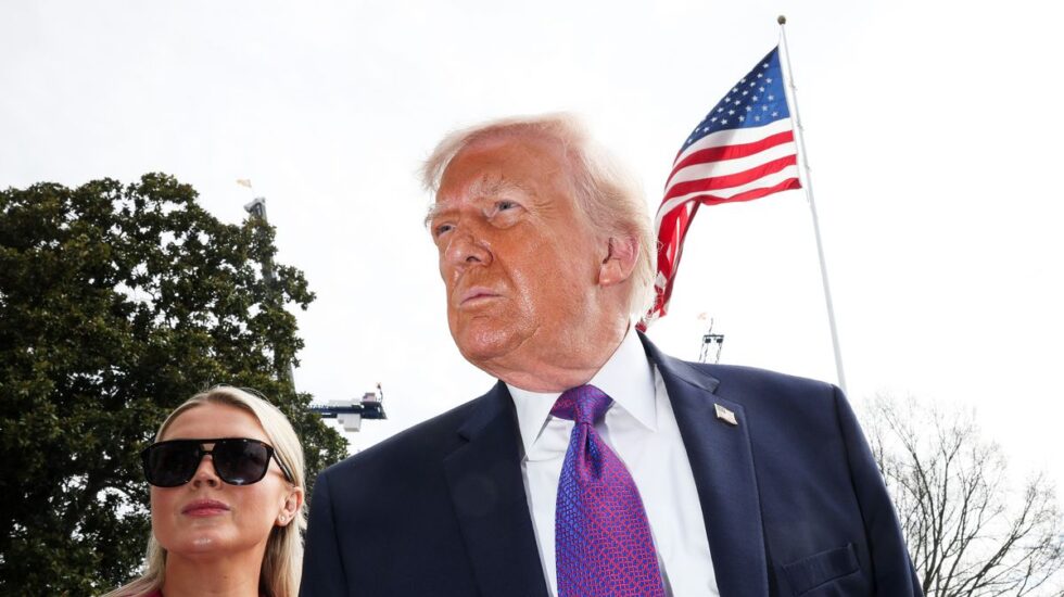 On March 11, Fox News paused its regular schedule and switched to President Trump, 79, addressing reporters outside the White House in Washington, D. C. White House Press Secretary Karoline Leavitt shielded her eyes with sunglasses as she walked behind him.