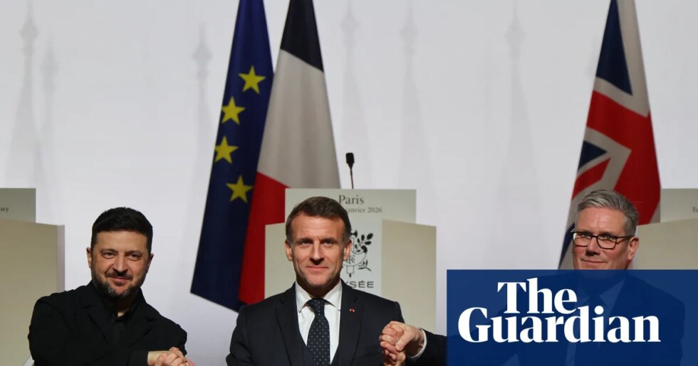 Britain and France have declared they are ready to deploy troops to Ukraine in the aftermath of a peace deal, a major new commitment that has been under discussion for months, although one which Russia is likely to block forcefully.The announcement came after a summit in Paris hosted by the French president, Emmanuel Macron, and attended by more than two dozen leaders of the states that make up the “coalition of the willing” of Ukrainian allies, plus the US envoy Steve Witkoff and Donald Trump’s son-in-law Jared Kushner, who said the US president “strongly stands” behind the security protocols.Macron, the UK prime minister, Keir Starmer and Ukraine’s Volodymyr Zelenskyy signed the trilateral declaration of intent on Tuesday evening after hours of talks, which they said would pave the way for the deployment of French and British troops on Ukrainian soil. “Following a ceasefire, the UK and France will establish military hubs across Ukraine,” said Starmer.However the planned ground force is unlikely to engage directly with Russian forces should Moscow relaunch an invasion of Ukraine. Macron made it clear that the goal of the force would be “to provide reassurance after the ceasefire” and noted it would be stationed “a long way behind the contact line”. There was no further clarity given immediately on the size or scope of the potential force.Macron said the coalition had also drawn up a plan to take on “ceasefire monitoring commitments under American leadership” as well as “long-term support to Ukrainian armed forces who are and will remain in the frontline of defence”.Answering a question about whether the US would come to the aid of European forces if they were attacked in Ukraine, Witkoff said the security guarantees were “as strong as anyone has ever seen” and were meant to “deter any further attacks […] if there are any attacks they’re meant to defend. And they will do both.”He added: “The president does not back down from his commitments, he is strong for the country of Ukraine and for a peace deal. We will be there for the Ukrainians in helping them to get to that final peace,” said Witkoff.Witkoff and Kushner were in Paris representing the US after the secretary of state, Marco Rubio, who had been due to attend the talks, pulled out after Trump’s Venezuela attack.The talks in Paris came as Trump’s attention shifts from Ukraine to Venezuela, and as his repeated threats to annex Greenland are causing friction in the US-Europe relationship. Several questions at a joint press conference following the signing revolved around whether Europe could trust US security guarantees at a time when Trump was threatening another Nato member with military action.Separately, US and Ukrainian delegations have been trying to sign a bilateral peace agreement for weeks, which the White House would then take to Russia. Zelenskyy and others from the Ukrainian delegation were due to meet separately with Witkoff and Kushner on Tuesday evening.However, Zelenskyy said the issue of Ukraine giving up territory remained a sticking point in the talks. “We have a number of ideas that could be helpful,” he said, adding that if the negotiating teams could not come to an agreement, he was ready to discuss directly with Trump.Witkoff agreed that territory “will be the most critical issue” in discussions. “Hopefully we’ll be able to come up with certain compromises,” he said.Although Trump has repeatedly claimed that peace is just around the corner, there has been little sign that Moscow is ready for a deal, and Russian officials have repeatedly ruled out a temporary ceasefire or quick deal, saying they want a comprehensive settlement that addresses what they claim are the “root causes” of the conflict.The Kremlin has also said it will categorically oppose any Nato soldiers being based on Ukrainian soil as part of any deal, and as Moscow appears to be content with continuing fighting for now, the prospect of a negotiated deal followed by a subsequent force deployment seems unlikely at least in the short term.Starmer ackowledged that reality in his comments on Tuesday. “We are closer to [peace] than ever but of course the hardest yards are still ahead,” he said. “We can only get to a peace deal if Putin is ready to make compromises. Putin is not showing he is ready for peace,” he added.The Paris meeting gathered an impressive roster of world leaders, with 27 heads of state or government coming to Paris for the talks. There were also a series of meetings on the sidelines of the summit, including of French, British, Ukrainian and Nato military chiefs.Italy’s Georgia Meloni and Poland’s Donald Tusk said after the talks that their nations would not contribute troops to any mission to Ukraine. German chancellor Friedrich Merz said German troops could contribute to a force, but would be based in neighbouring countries, not inside Ukraine.Over the weekend, Zelenskyy said he feared that “not everyone is ready” to commit forces to Ukraine, and conceded that intelligence sharing and weapons transfers were also crucial modes of support. However, he said British and French commitments to deploy forces would be essential for any security guarantees to have meaning.“Speaking frankly as president, even the very existence of the coalition depends on whether certain countries are ready to step up their presence,” he said. “If they are not ready at all, then it is not really a ‘coalition of the willing.’”